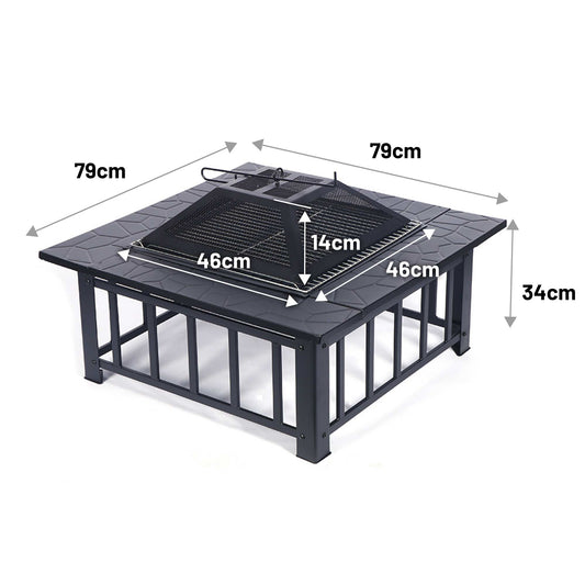 Silver & Stone 3 in 1 Outdoor Fire Pit with BBQ Grill Shelf & Waterproof Cover