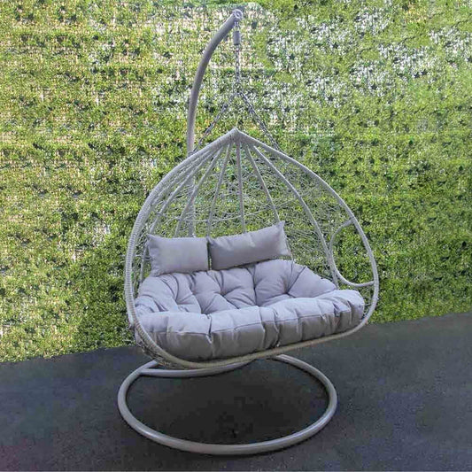 Silver & Stone Ariana Hanging Cocoon Rattan Double Egg Chair - Grey