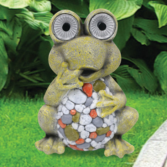 Silver & Stone Outdoor Solar Frog Ornament Pebble Effect