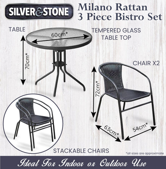 Silver & Stone Milano Rattan Bistro 3 Piece Furniture Set - Black