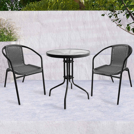 Silver & Stone Milano Rattan Bistro 3 Piece Furniture Set - Grey