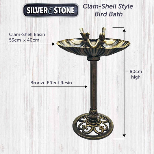 Silver & Stone Outdoor Bird Bath Clam Style 80cm - Bronze Effect