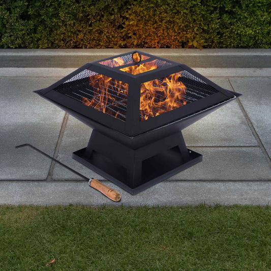 Silver & Stone Outdoor Fire Pit & BBQ Grill - Barbecue Grill Outdoor