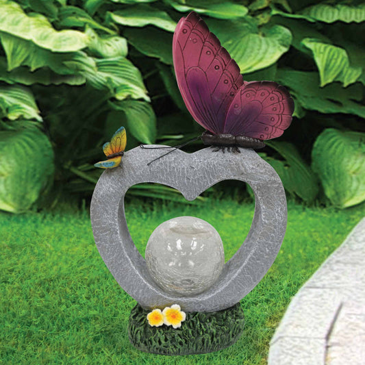 Silver & Stone Outdoor Butterfly Ornament with Solar Crackle Effect Ball - Purple Butterfly