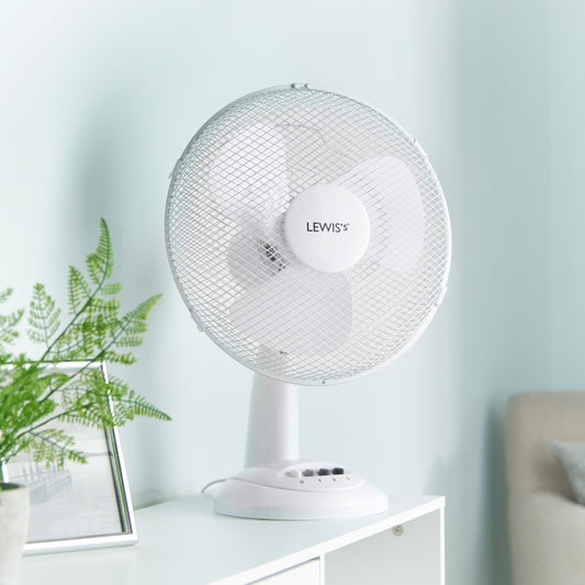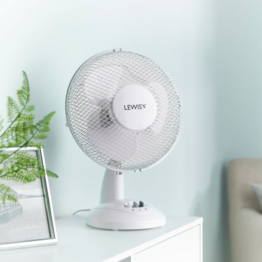 Lewis's 12" Tabletop Desk Fan Adjustable Tilt Head & Push Button Controls