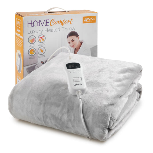 LEWIS'S Luxury Electric Heated Fleece Throw Blanket 130CM x 160CM Grey or Dark Charcoal