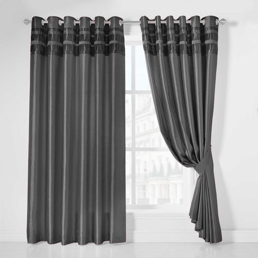 Cannes Faux Silk Pintuck Embellished Eyelet Curtains - BlackVendor:Isabella RoseRegular price From £16.97 GBPRegular priceUnit price per