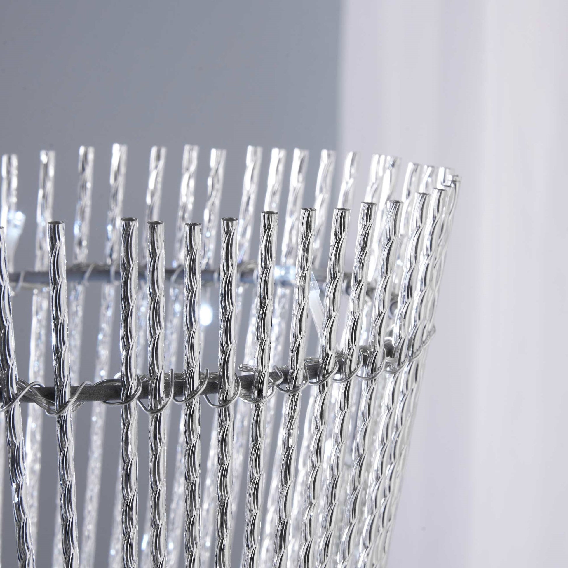 This modern Aluminium Spiral floor lamp features a twisted circular style design and is illuminated by LED lights from top to bottom. This spiral floor light is a standout piece for any home and once illuminated will add a sense of style and sparkle to any home.