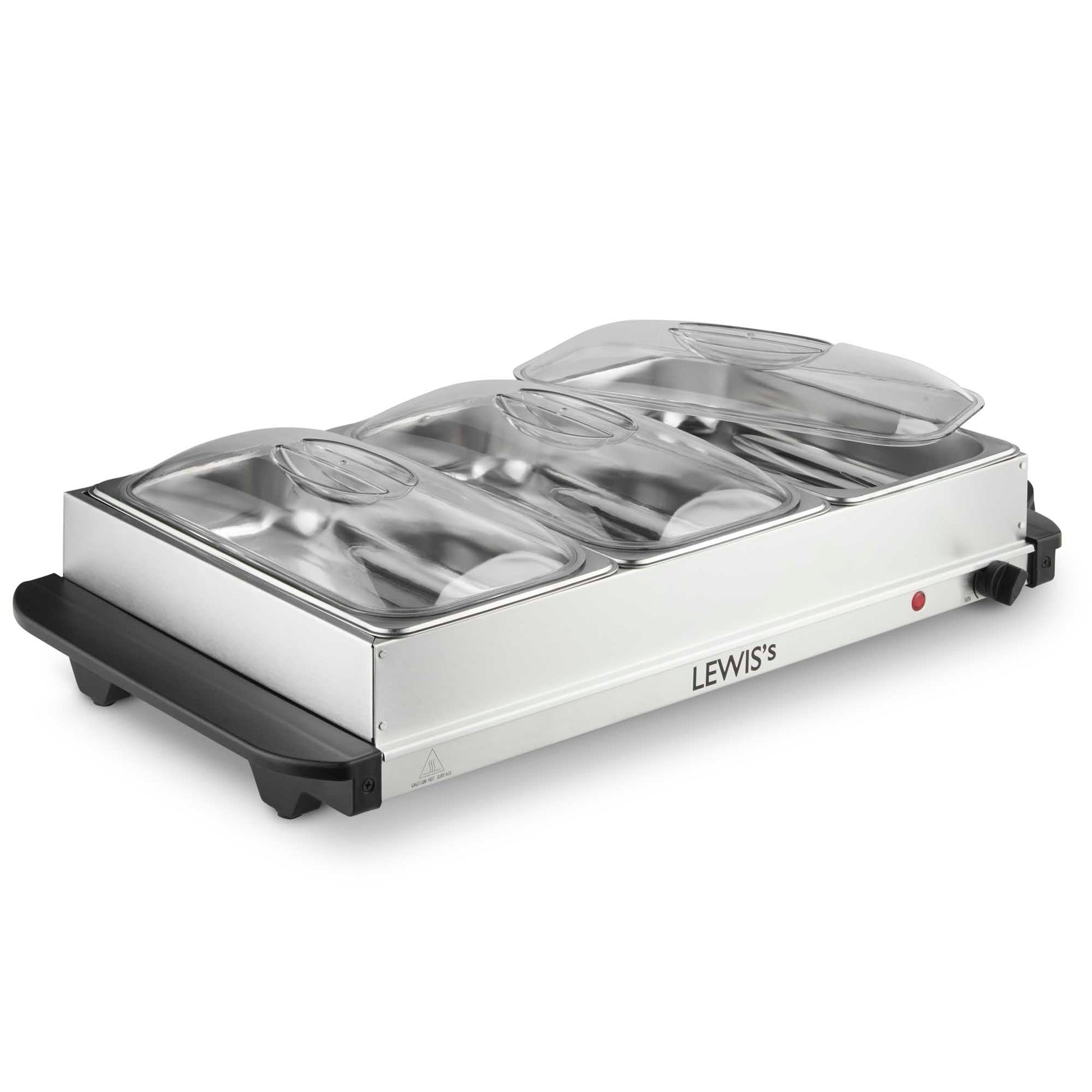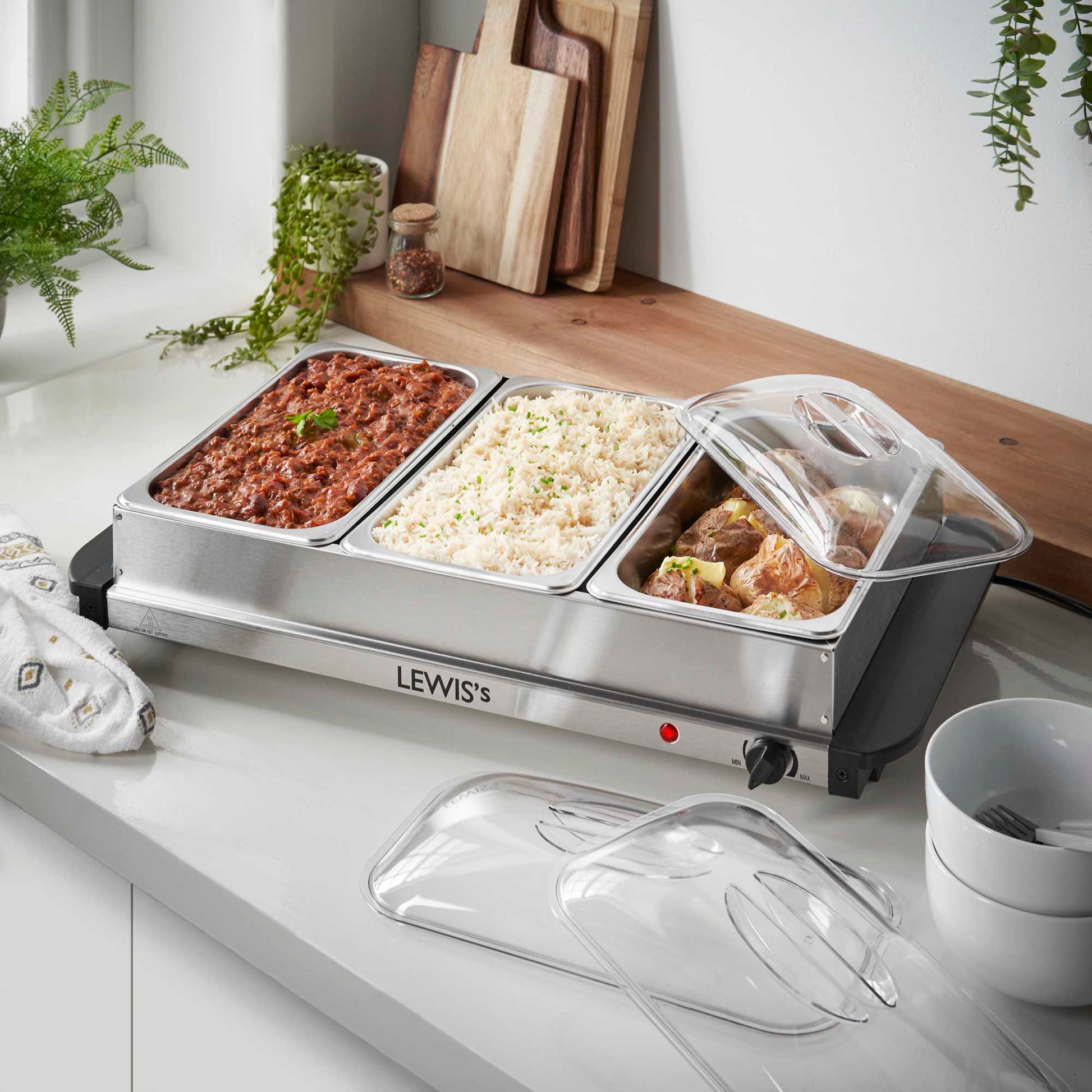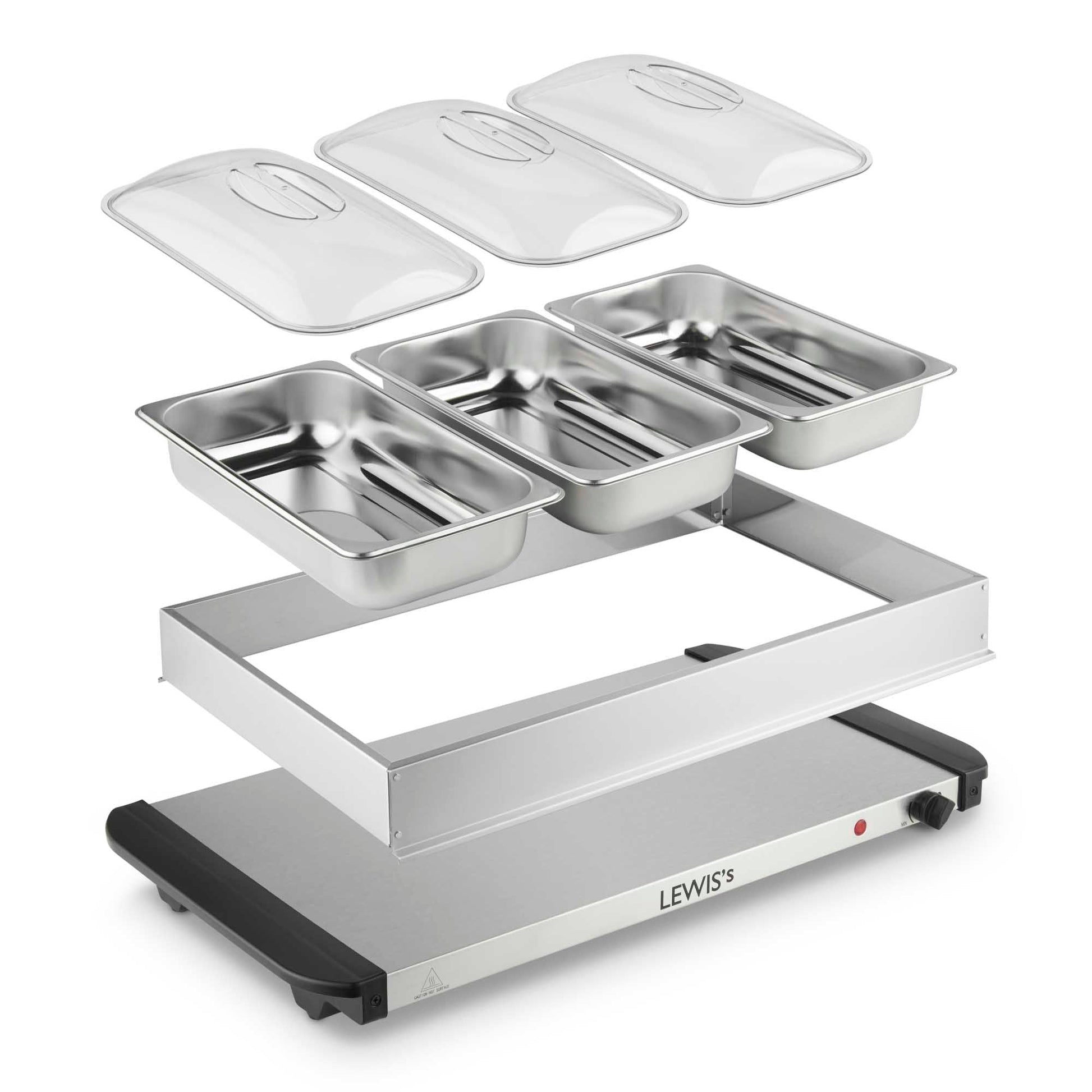 - LARGE CAPACITY BUFFET WARMER – The efficient buffet server features 3 warming pens, serving stations with lids to cover up food when in use. By removing the warming pens, you will be able to turn the buffet server into a large hotplate. The incorporated lids help to maintain the freshness and warmth of the food being served.