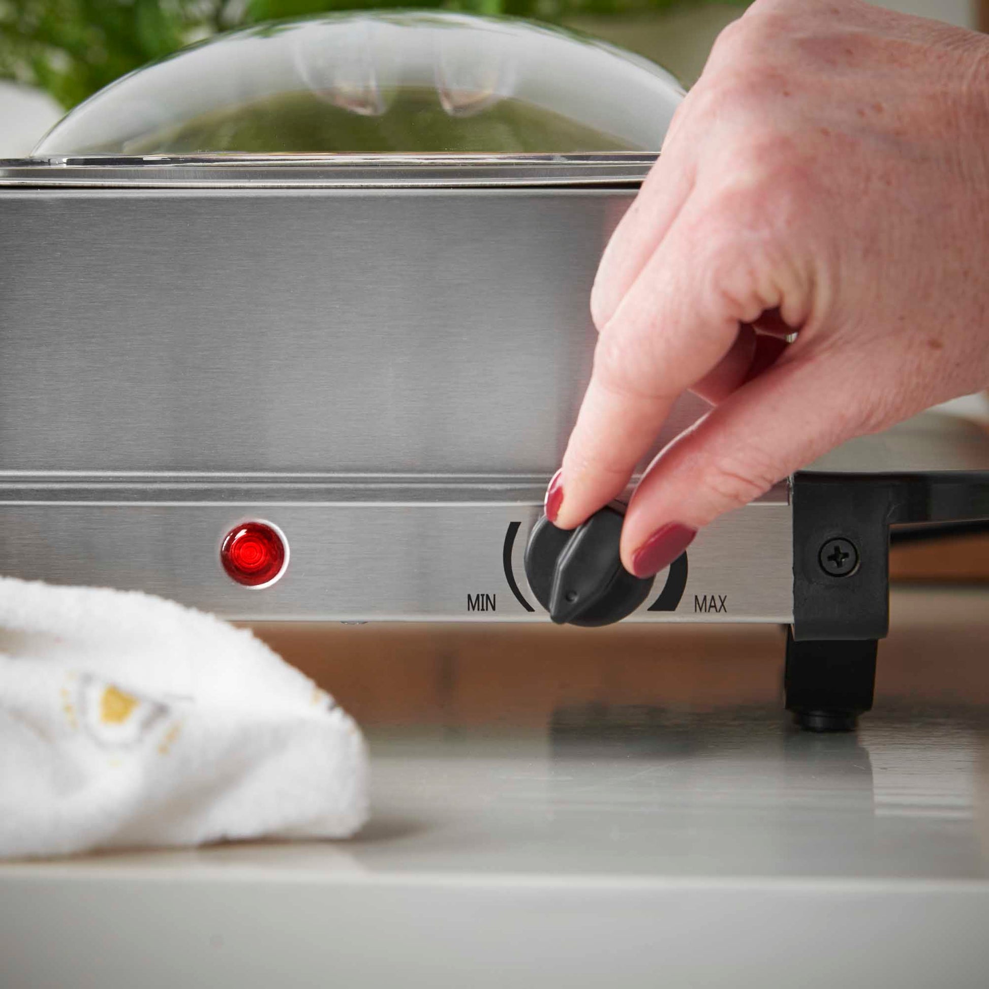 - IDEAL FOR LARGE GATHERINGS – This highly useful buffet server is the perfect appliance for any event or family gathering. Whether you are hosting for family, friends or any other alternative group the temperature-controlled server is perfect for keeping large portions of food warm and maintaining the quality of food when serving to large groups.