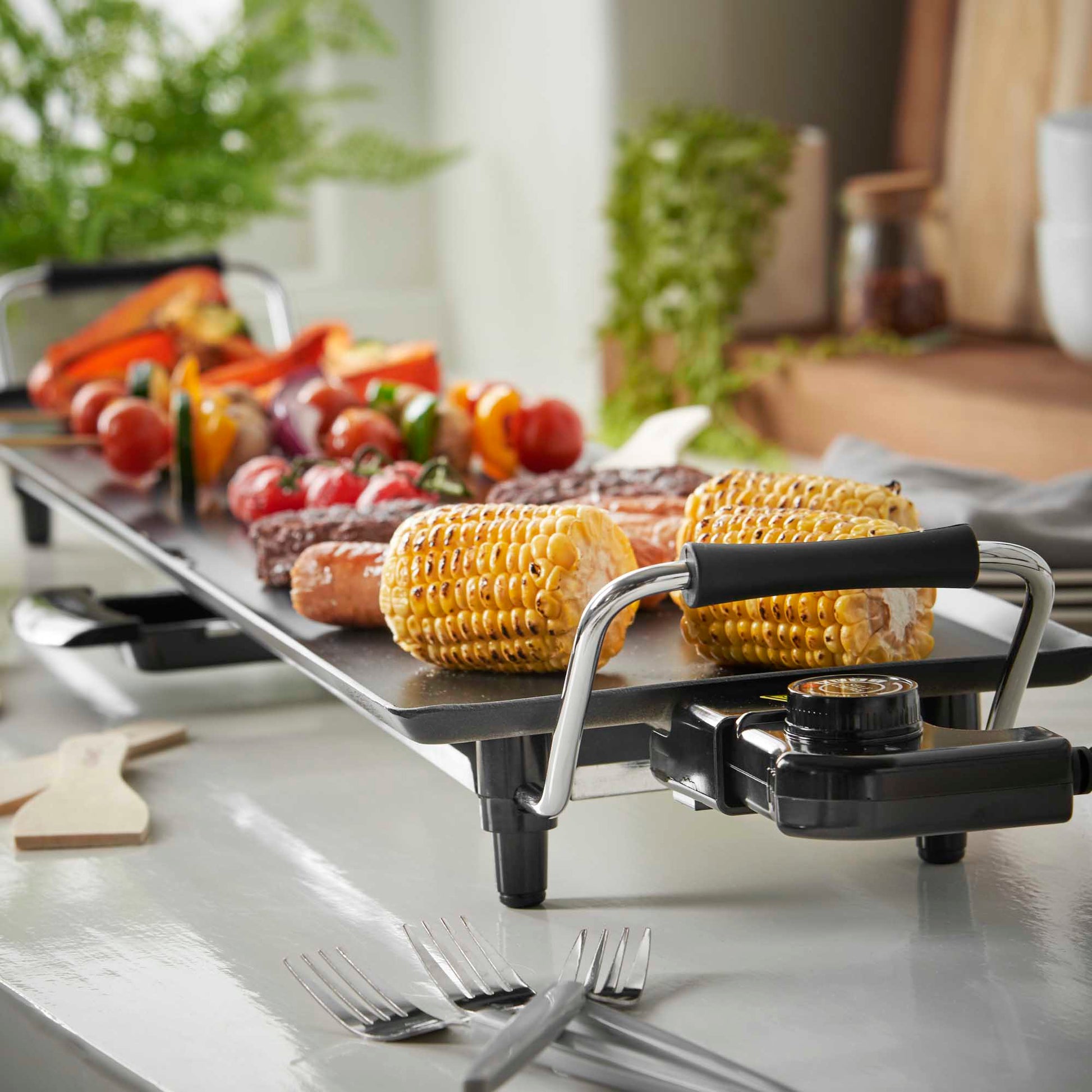 TABLE TOP COOKING - This powerful and practical extra-large teppanyaki grill is controlled thermostatically. The grill has 5 adjustable temperature settings and independent temperature control makes it easy to transition between whichever heat it is that you require. When you reach your desired heat temperature an orange neon light will show indication to help guarantee cooking times are efficient.