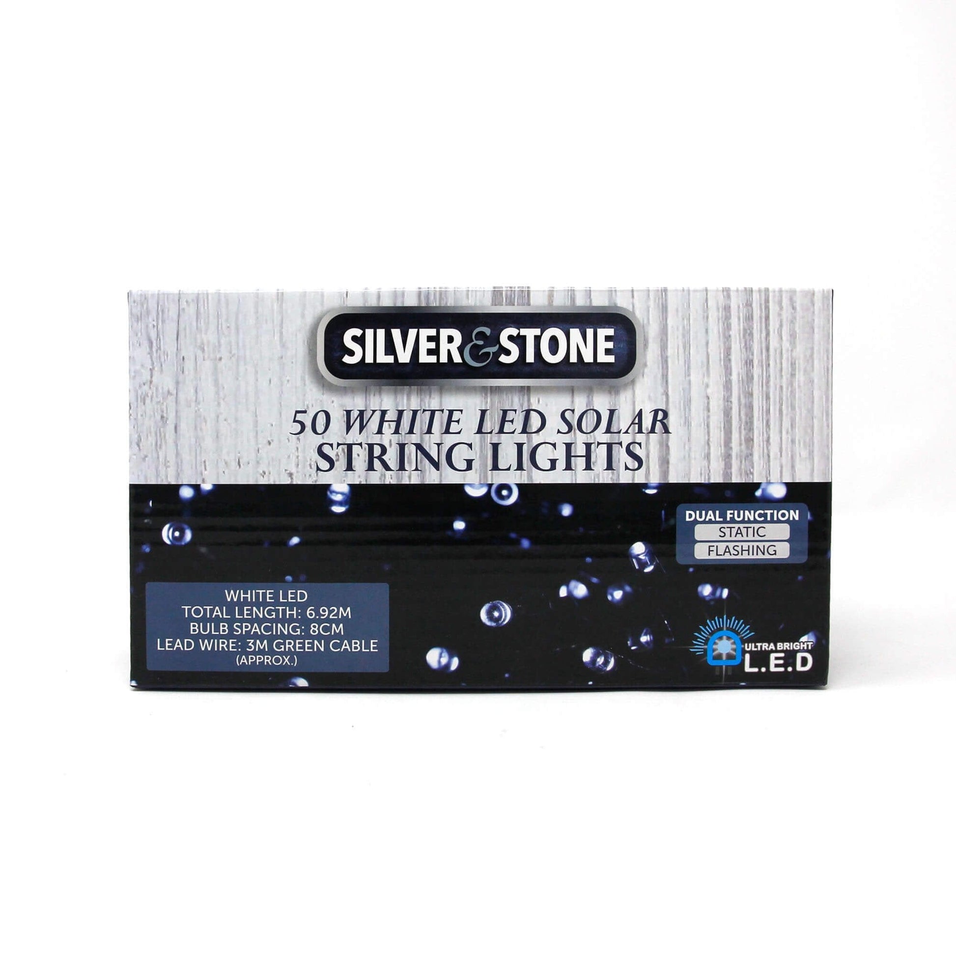 Silver & Stone Solar Powered String Lights with 50 White LEDs